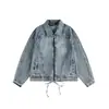 Procesando Personalizado Fuente 2023 Tendencia Calle Alta Personalidad Retro Chaqueta de Mezclilla Lavada Hombres y Mujeres Cuándo