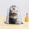Mochila impermeable de tela Oxford de poliéster personalizada, mochila con cordón y diseño de gato, paquete de regalo con estampado a color, bolsillo con solapa y pantalones con logotipo impreso.
