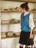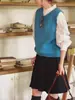 Chaleco de Punto de Lana Retro Francés Color de Campo "Sicilia" Suéter Chaleco de Cuello Redondo Literario en Capas