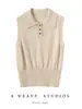 Cuello camisero otoño e invierno nuevo suéter 100% cachemir puro suelto suave adelgazante tejido sin mangas suéter básico