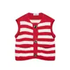 Chaleco de punto sin mangas a rayas de cuello redondo en color contrastante estilo coreano para mujer otoño e invierno 2024 Nueva prenda exterior versátil adelgazante top de moda