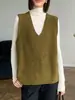 Chaleco Tejido de Lana de Oveja Primavera y Otoño 2025 Suéter Seamless de Una Pieza Chaleco de Cuello en V Apilado