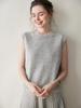 "Bailu" 60s Algodón Puro Falso Dos Piezas Cuello Redondo Chaleco de Punto Ajustado Capa Superior sin Mangas Ropa Interior de Punto
