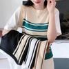 Suéter a rayas suéter de color contrastante diseño de otoño e invierno sentido de nicho de dos piezas falsas estilo fresco chaleco versátil manga corta mujer