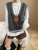 Chaleco Suéter Gris Estilo Nórdico para Mujer Otoño Suéter Base Top Cuello Redondo Chaleco Estilo Universitario