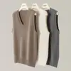 Nuevo chaleco de punto de lana pura, jersey de primavera y otoño, suéter adelgazante sin mangas de cachemira con cuello en V, abrigo superior
