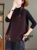 Chaleco Tejido Bordado Artístico Vintage para Mujer Primavera 2025 Nuevo Suéter Chaleco de Algodón con Cuello Redondo