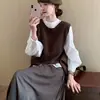 Chaleco de punto marrón Maillard con cuello redondo para mujer, primavera y otoño, holgado, para usar en capas, chaleco suéter, prenda interior, capa base, top sin mangas