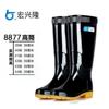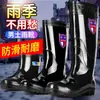Venta al por mayor de fábrica botas de lluvia de protección laboral para hombre, caña alta negra, botas de agua engrosadas, botas de lluvia para obra, venta al por mayor