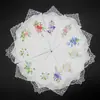 60 Piezas, 3 Piezas, Algodón Peinado 28cm Encaje Bordado Pañuelo Pequeño Toalla Cuadrada Algodón Puro Suave Bordado Pañuelo para Dama