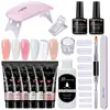 Set de Herramientas para Uñas de Gel de 5 Colores Gel de Extensión Aceite Nutritivo Lámpara Adornos de Dibujos Animados para Uñas Uñas Postizas Pinzas Set Completo