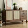 Aparador sencillo de madera maciza nórdica de nogal negro con puerta corrediza de ratán, moderno y minimalista, estilo japonés, armario para guardar platos