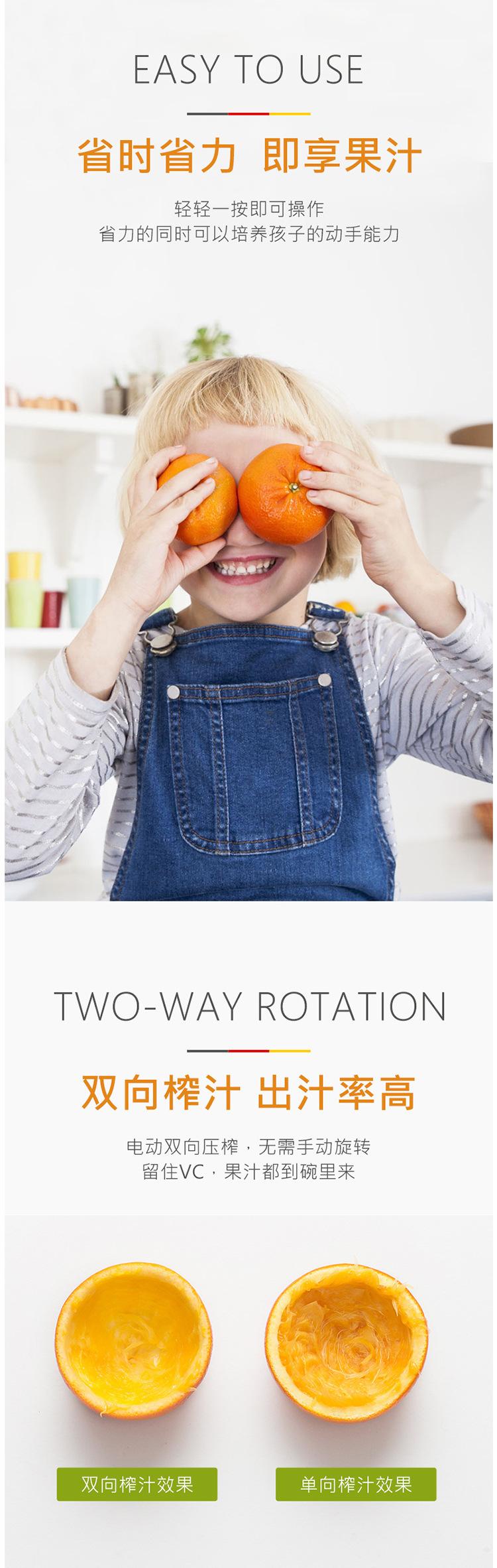 Após a máquina ser ligada, a tampa é removida. Em seguida, a laranja ou o limão com casca são pressionados contra o topo da máquina para alcançar rotação rápida e rápida produção de suco. Boa qualidade e boa produção de suco.