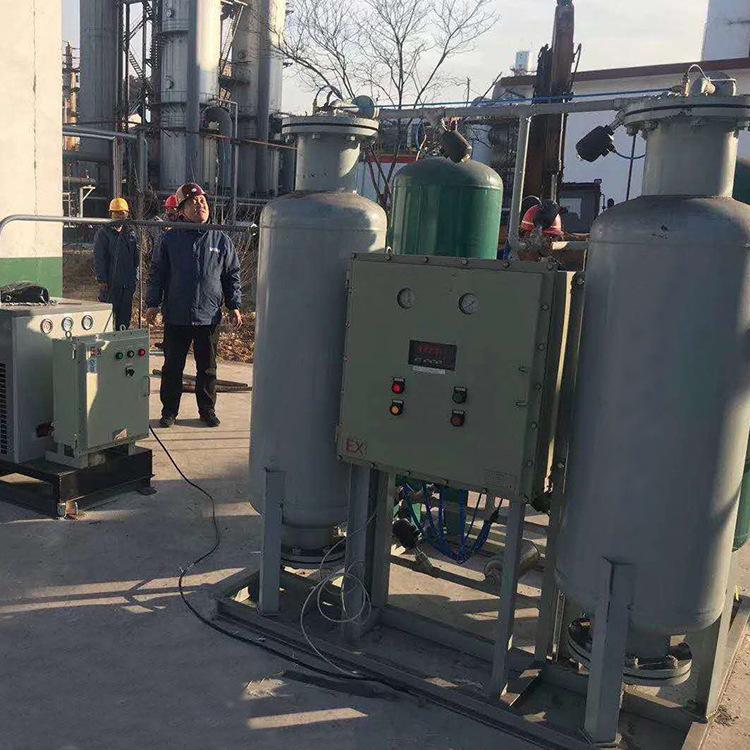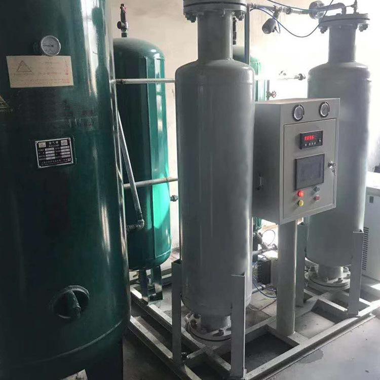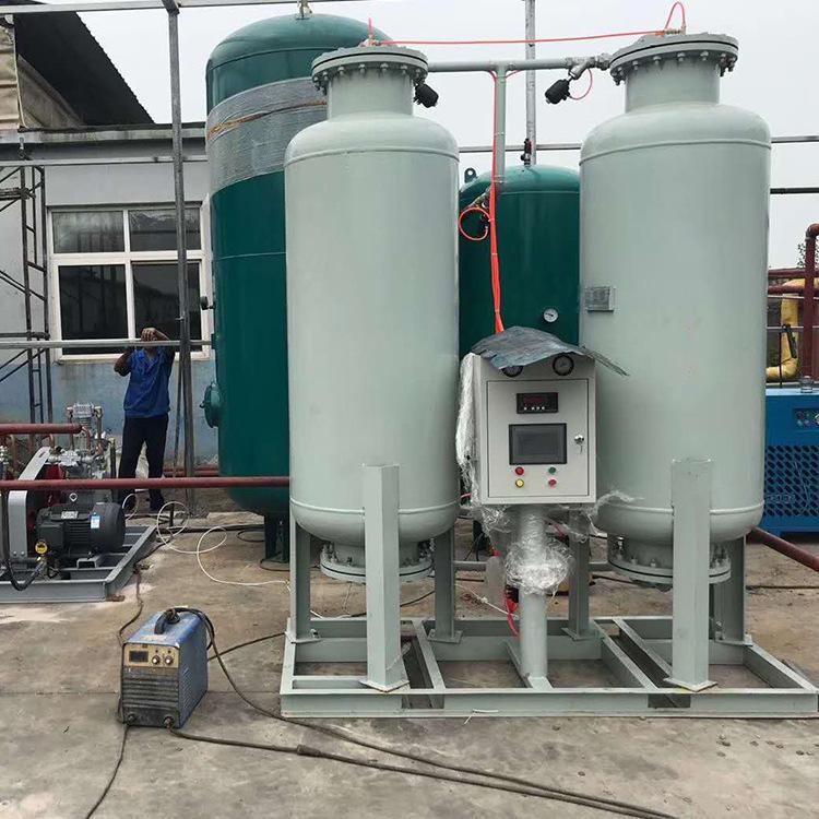 O gerador de nitrogênio é baseado no princípio da adsorção por oscilação de pressão,Primeiro, o ar é comprimido pelo compressor de ar até a pressão requerida e depois entra no tanque de armazenamento de ar, de modo que a variação da pressão do ar seja relativamente estável e aliviada para pressão estática. Uma grande quantidade de água líquida e óleo no ar comprimido são removidos através do tanque de armazenamento de ar, e então o ar é filtrado através do secador do sistema de tratamento de ar para remover água, óleo e poeira no ar comprimido, transformando o ar bruto em ar comprimido limpo e estável, e então passando pelo dispositivo de produção de nitrogênio por adsorção por oscilação de pressão PSA para produzir nitrogênio.