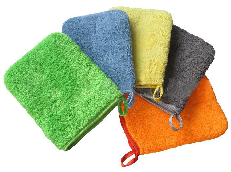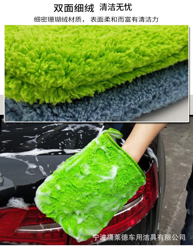 Materiales funcionales: Material de terciopelo coral de doble cara, buena absorción de agua, protección de la superficie de contacto, buena descontaminación, diseño dividido en el extremo superior del guante, fácil de agarrar y más conveniente para limpiar.