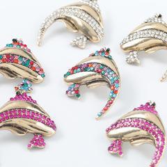 Série de diamantes coloridos da moda, liga criativa e personalizada incrustada com diamantes e strass, brincos em forma de peixe, modernos e femininos, brincos de celebridades da internet europeias e americanas