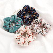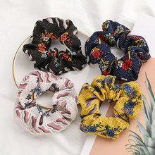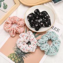 Moda estilo japonês e coreano tecido estampado de flores faixa de cabelo coreana corda de cabelo elegante de alta qualidade anel de intestino grosso cabeça de flores vendas diretas da fábrica