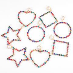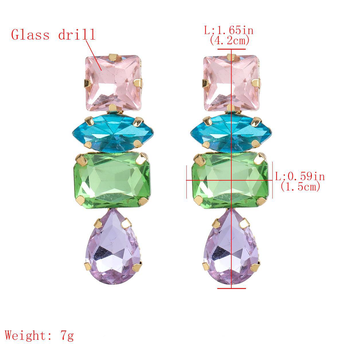 Moda série de diamantes coloridos geométricos vidro diamante incrustado com diamante super flash brincos de diamante completos moda feminina europeia e americana temperamento super fada brincos
