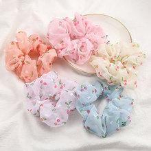 Dongdaemun da Coreia do Sul Moda Verão Frutas Estilo Cereja Impresso Chiffon Tecido Laço de Cabelo para Mulheres Acessórios de Cabelo Europeus e Americanos Anel de Intestino Grande