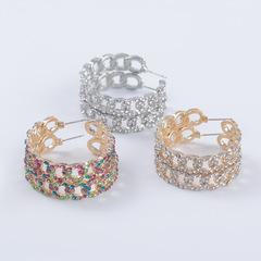 Liga de círculo de joias de alta qualidade europeia e americana incrustada com diamantes e strass brincos ocos para mulheres, luxo leve, versátil, super brilhante, brincos grandes