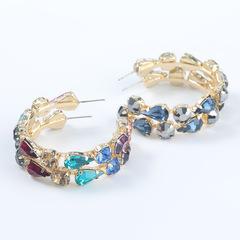 Liga de série de diamantes coloridos da moda incrustada com diamante em forma de gota de vidro brincos em forma de C para mulheres brincos europeus e americanos