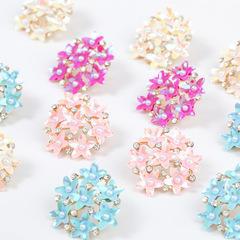 Flores de resina redondas multicamadas transfronteiriças europeias e americanas incrustadas com diamantes e pérolas Brincos coreanos para mulheres em brincos super fadas de celebridades da Internet