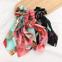 High-end europeu e americano estilo retro impresso tecido de seda faixa de cabelo coreano duplo rabo de cavalo cachecol bandana acessórios de cabelo de celebridades da internet