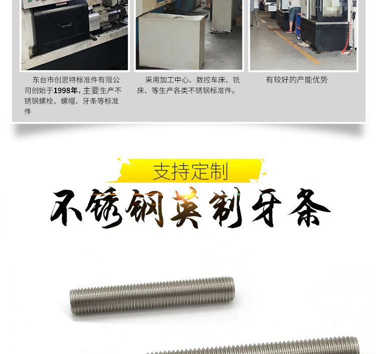 La empresa cuenta con equipos de automatización de primera clase y un equipo técnico profesional. Se esfuerza por desarrollar e innovar, se adhiere a la guía de las normas nacionales y se basa en las necesidades del cliente, para ofrecerle productos de alta calidad. Los principales productos de la empresa: varillas de tornillo, varillas roscadas, plumas, varilla roscada de acero inoxidable, varilla roscada, tornillo de rosca completa, tornillo de rosca completa, tornillo roscado, varilla roscada en pulgadas, varilla roscada en pulgadas, varilla roscada 304, especializada en la producción de varilla roscada de acero inoxidable en pulgadas, procesamiento de varilla roscada completa, varilla roscada 304 sin espárragos de cabeza, etc., la empresa tiene un sistema de gestión de calidad completo y científico para ofrecerle productos de alta calidad. Dongtai Chuangsite Standard Parts Co., Ltd. ha sido reconocida por la industria por su integridad, resistencia y calidad del producto.