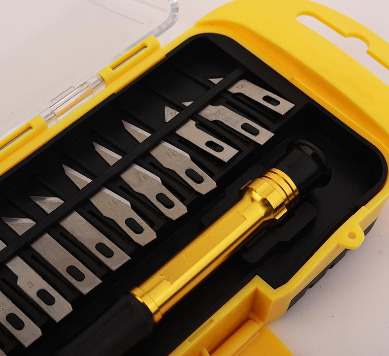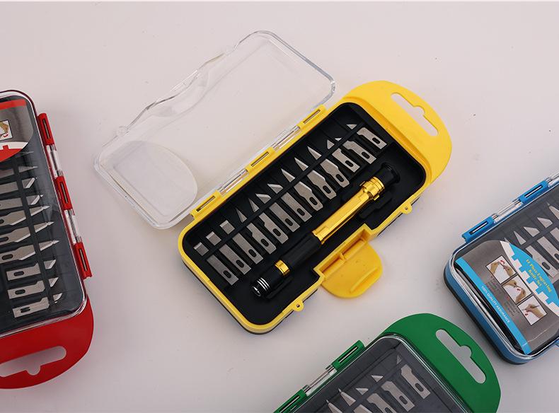 Juego de 14 piezas de cuchillos de grabado nuevos de aluminio y plástico.