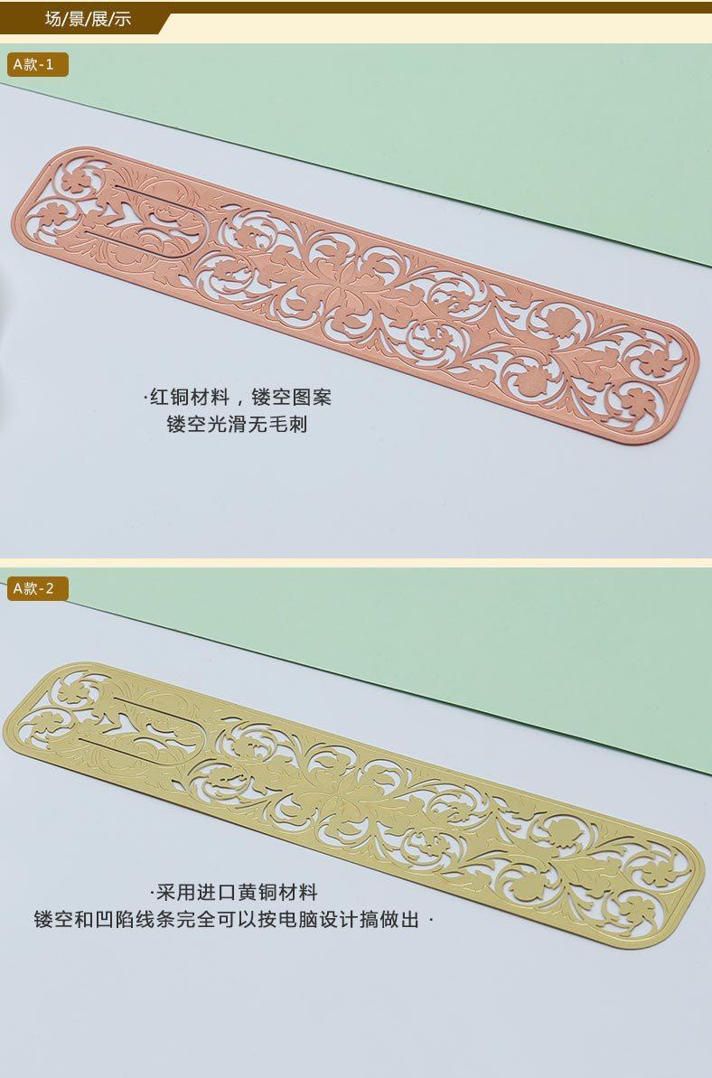 Vendas diretas da fábrica oco marcador régua estilo material de cobre vermelho design livre artesanato de metal personalizado atacado |