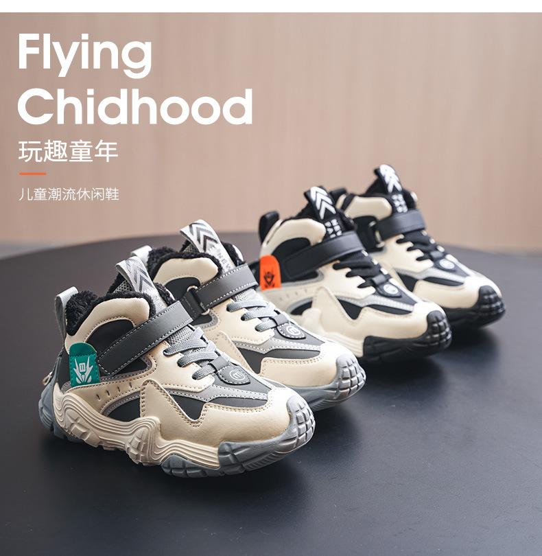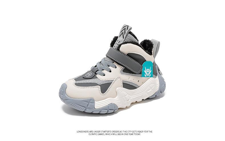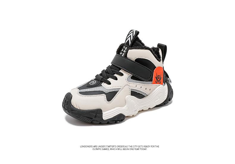 Sapatos esportivos para meninos mais veludo 2024 botão giratório sapatos de basquete sapatos casuais infantis outono e inverno tênis para meninos e sapatos de malha