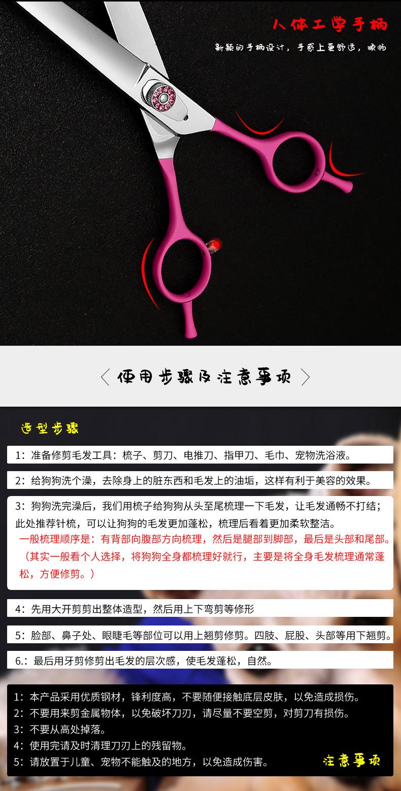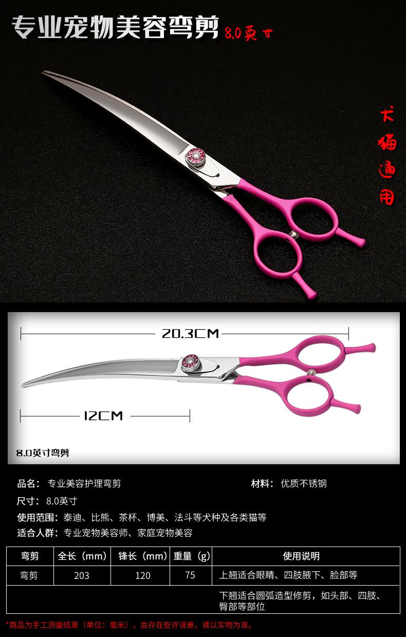 | Descripción de la función (función) | Estas tijeras curvas para mascotas están cuidadosamente hechas de material de acero inoxidable 440C de alta calidad. La superficie está finamente elaborada y utiliza tratamiento térmico al vacío para asegurar que las tijeras curvas para mascotas estén afiladas y no tiren del pelo. Tiene tecnología importada, calidad de exportación y precio de venta nacional. |