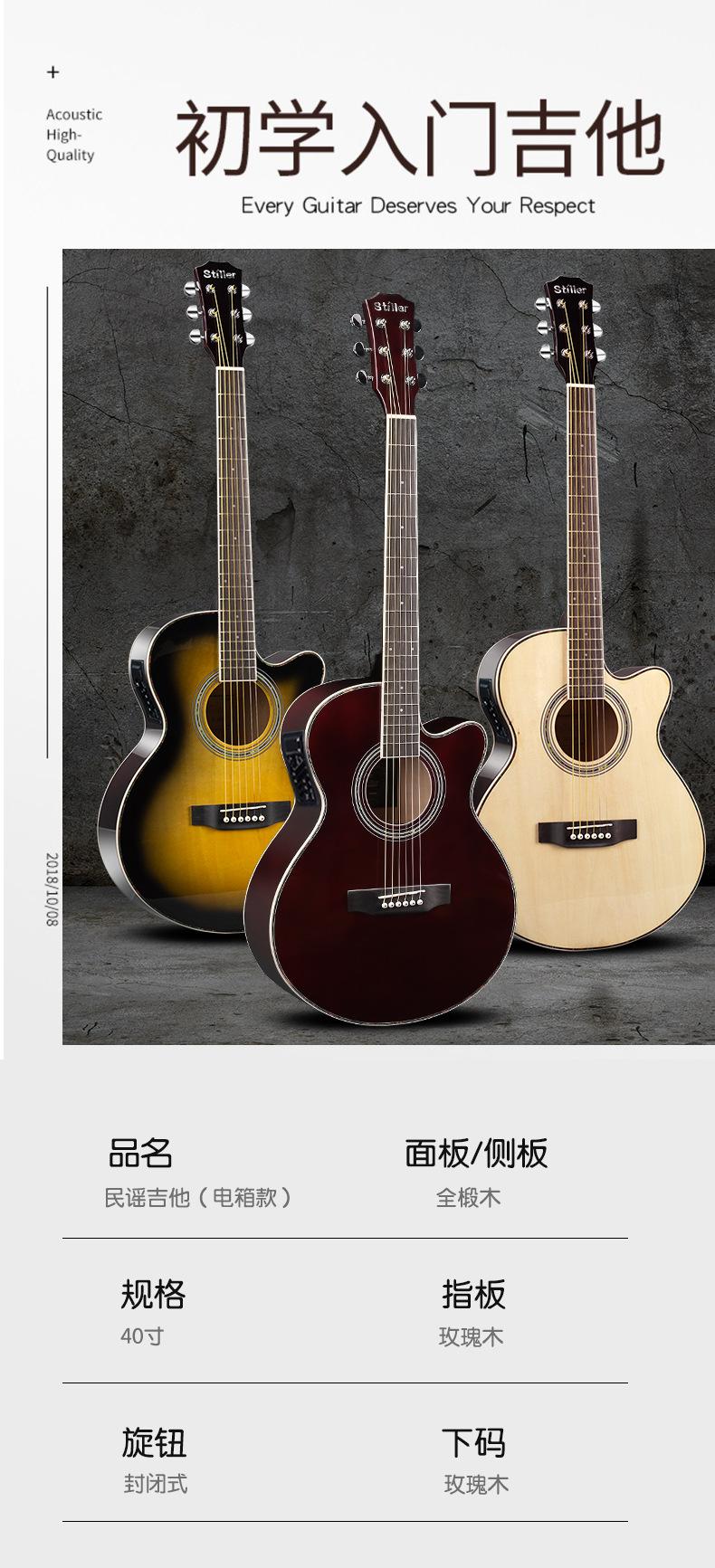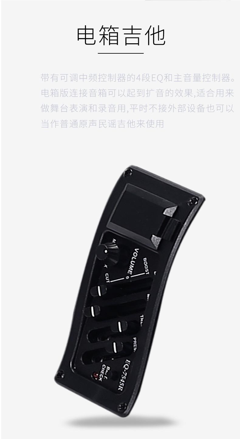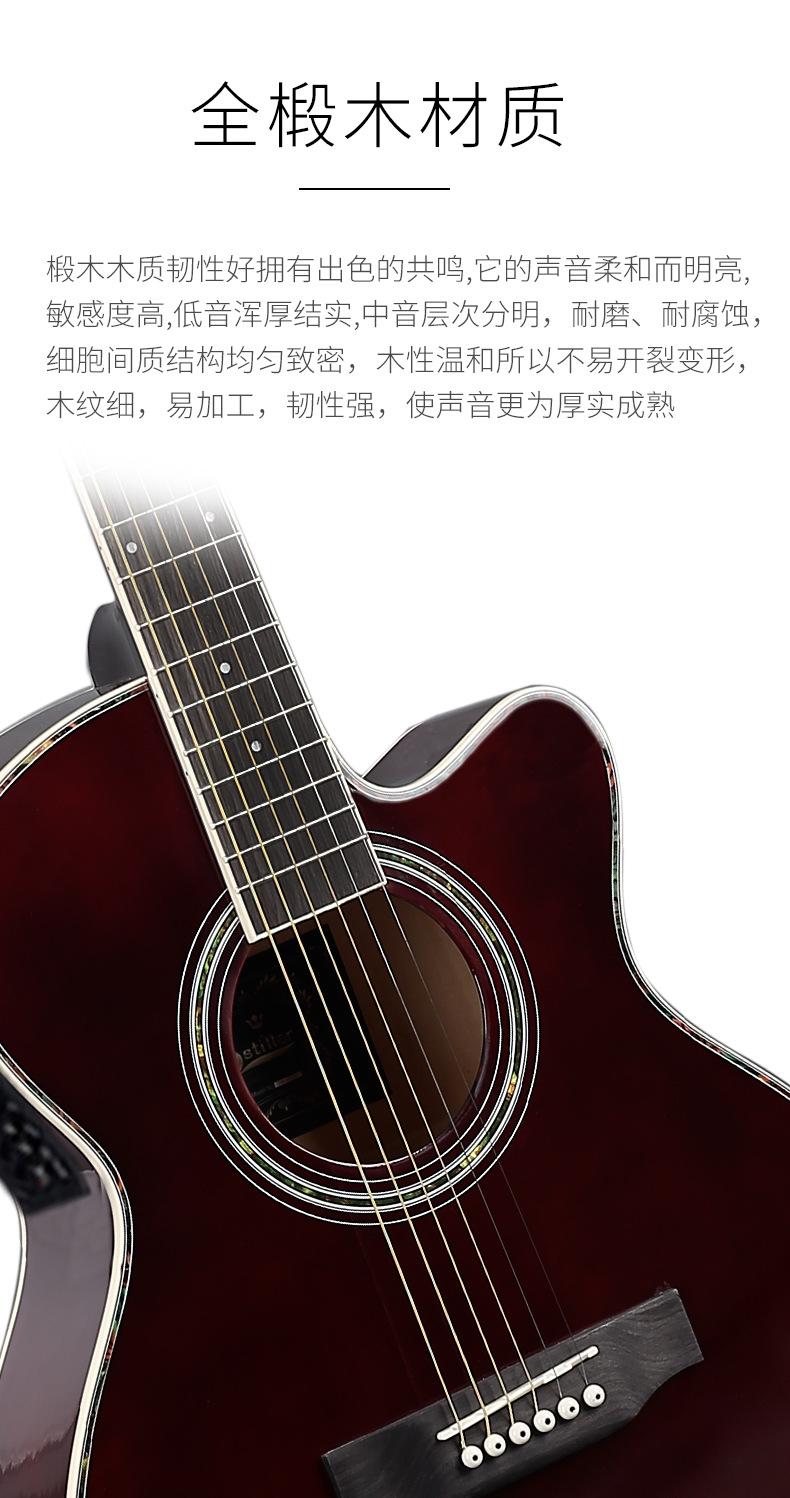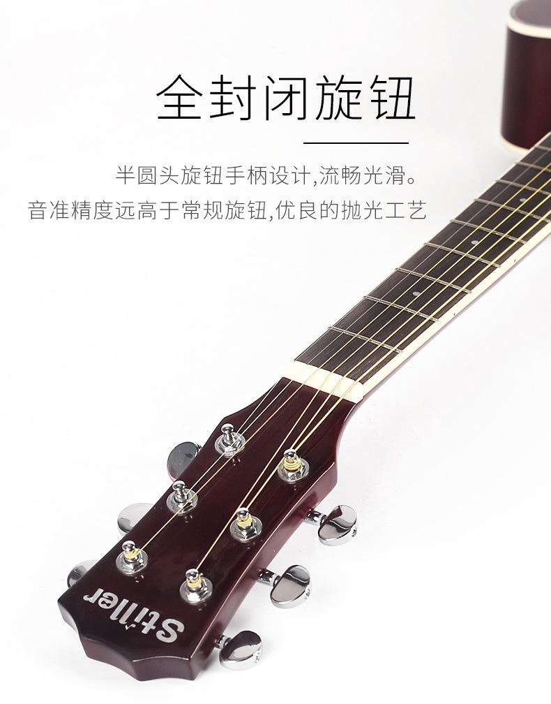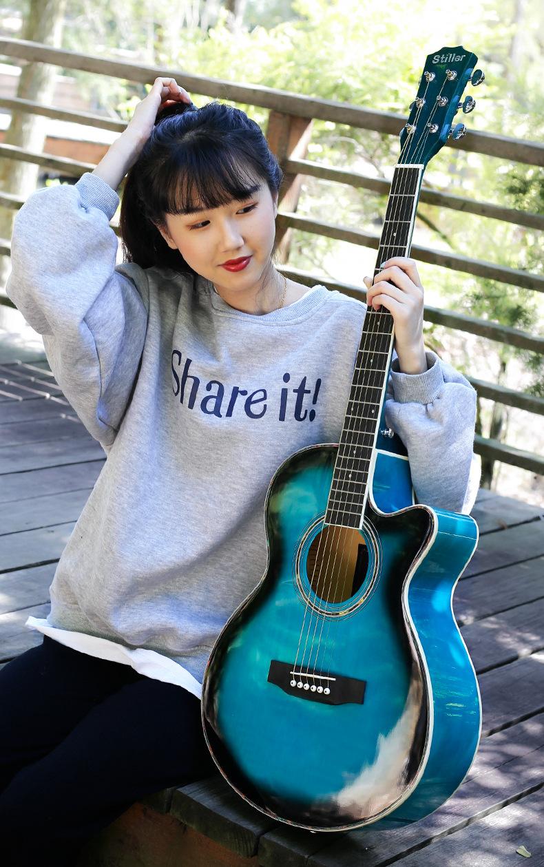 El modelo principal de instrumentos musicales de moda - guitarra folk está disponible en opciones de 40 pulgadas y 41 pulgadas en acabado brillante/mate.Recomendado para clubes escolares, tiendas de piano y principiantes
