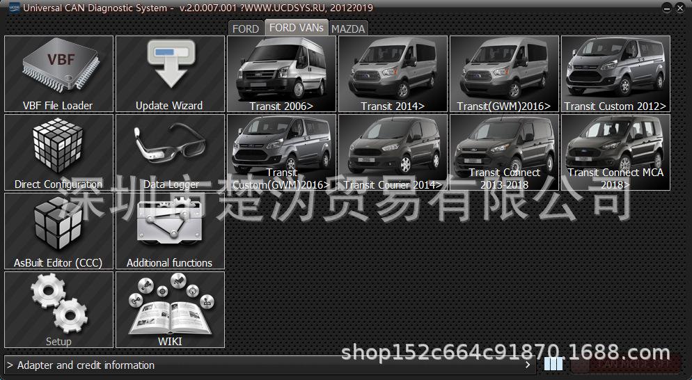 O adaptador de diagnóstico do sistema de diagnóstico universal de hardware e software (UCDS) é fabricado em uma placa de circuito impresso padrão com o uso de componentes eletrônicos modernos de alta velocidade. É fabricado na Rússia, São Petersburgo. PCB com os controles e luzes indicadoras necessários está embutido na minicaixa de plástico padrão (fotos 1-5) com conector USB para conexão a um PC com drivers e software pré-instalados e conector OBD II para conexão à interface de diagnóstico do carro . As luzes de inspeção permitem determinar visualmente o estado atual da fonte de alimentação, um processo que ocorre em tempo real (leitura/gravação de dados), dependendo do modo de operação do adaptador. Os controles externos no adaptador são feitos na forma de botões que servem exclusivamente para o modo adaptador sem conexão a um PC. O adaptador possui capacidade integrada para atualizar seu software interno (firmware). Para a versão mais recente, entre em contato com os desenvolvedores.