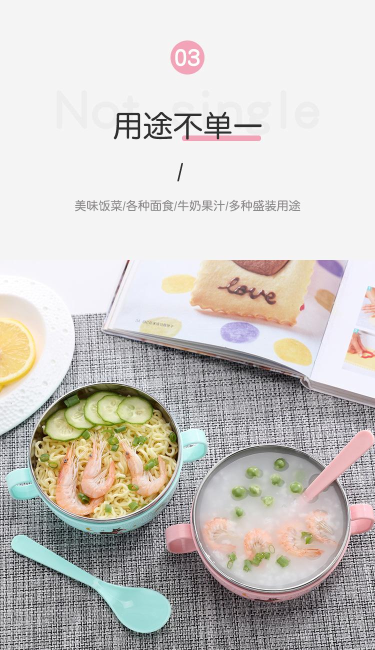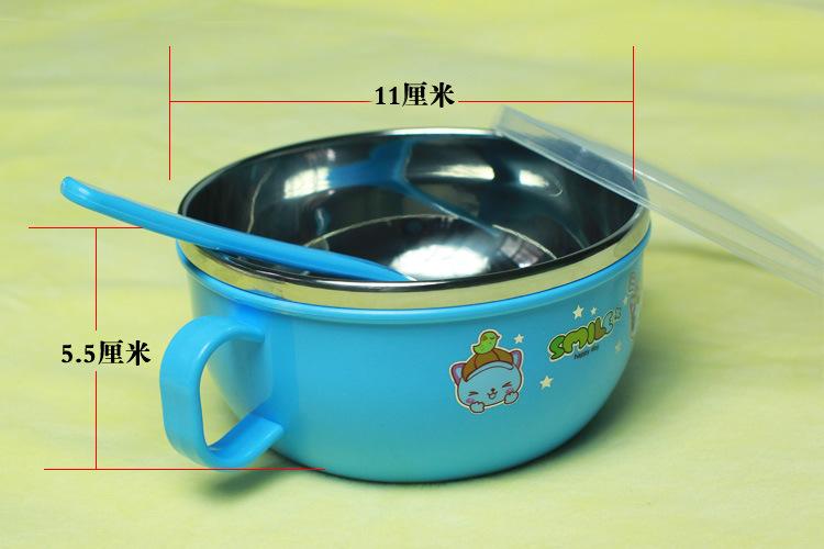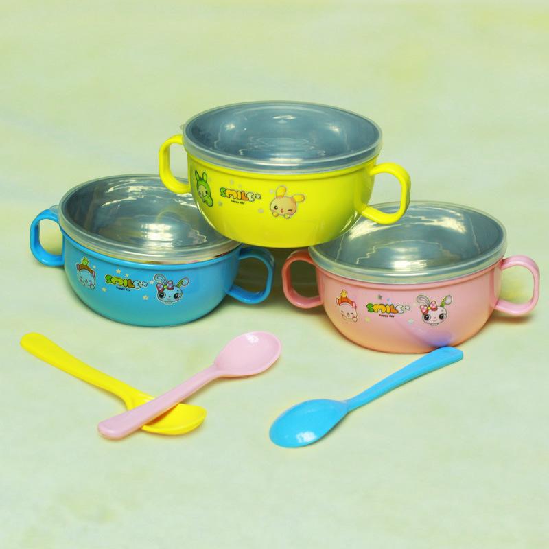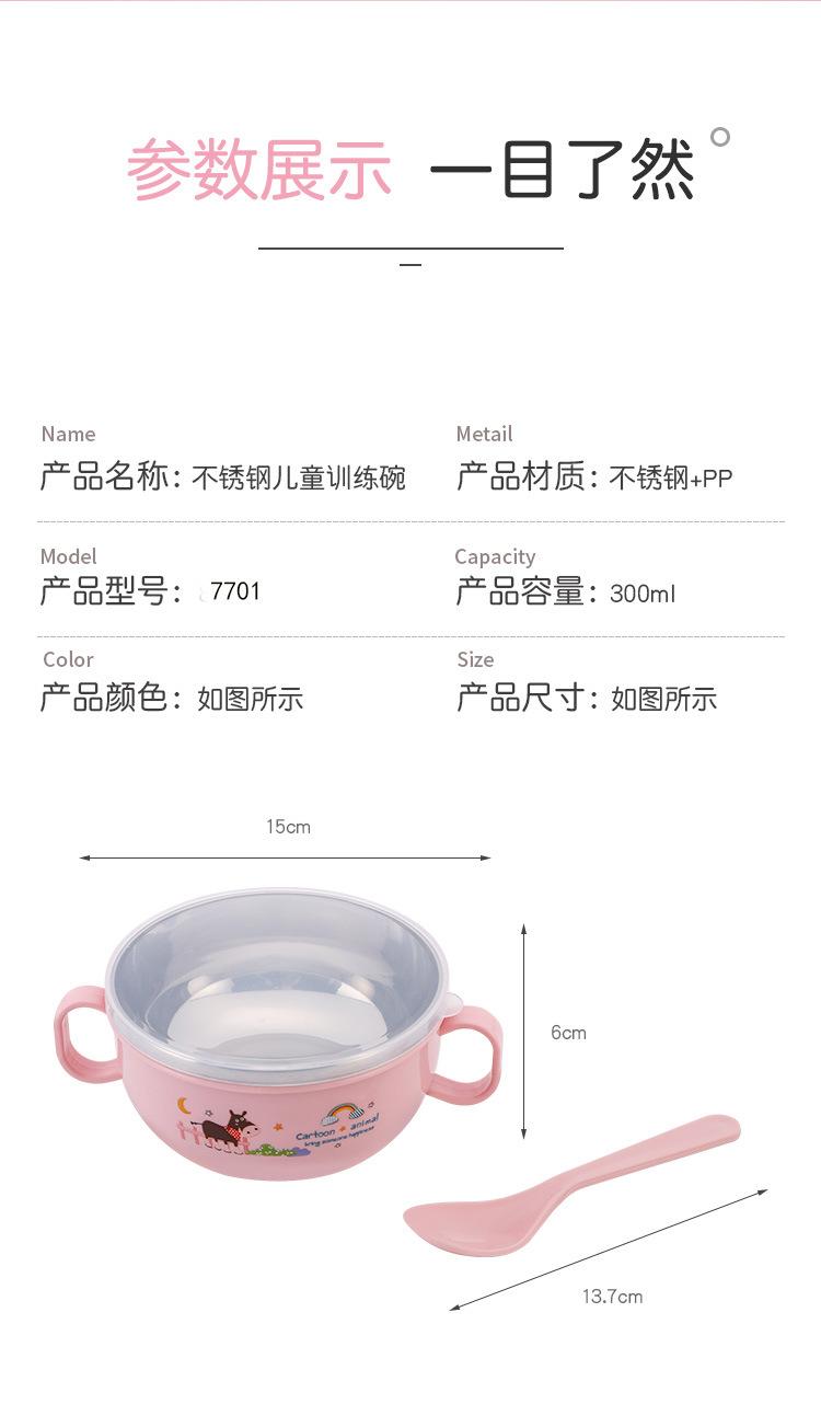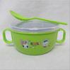 Conjunto: tigela de aço inoxidável + colher de PP (tampa de PP)