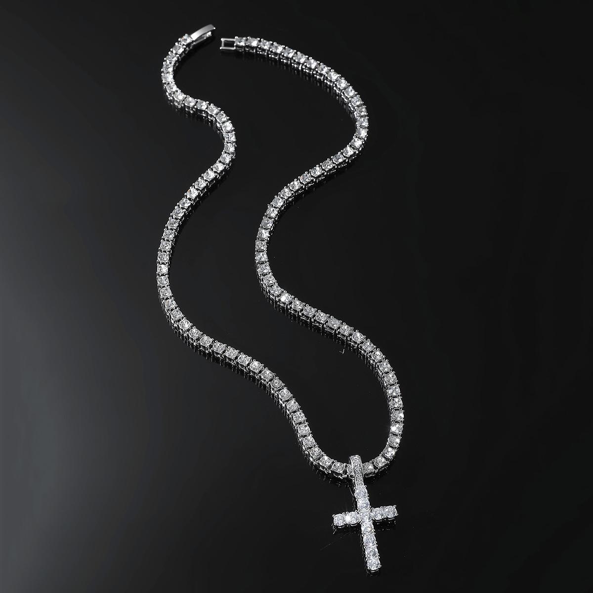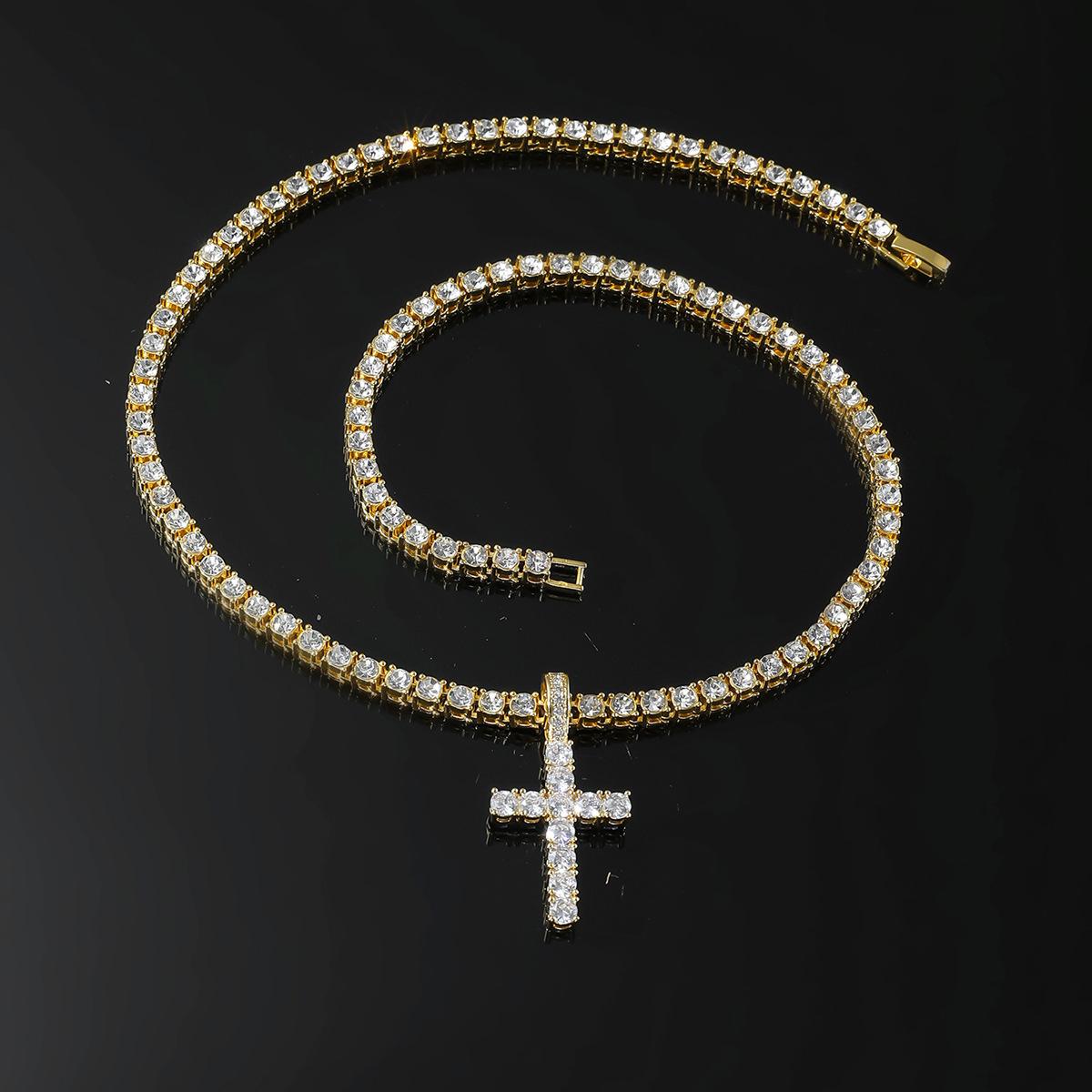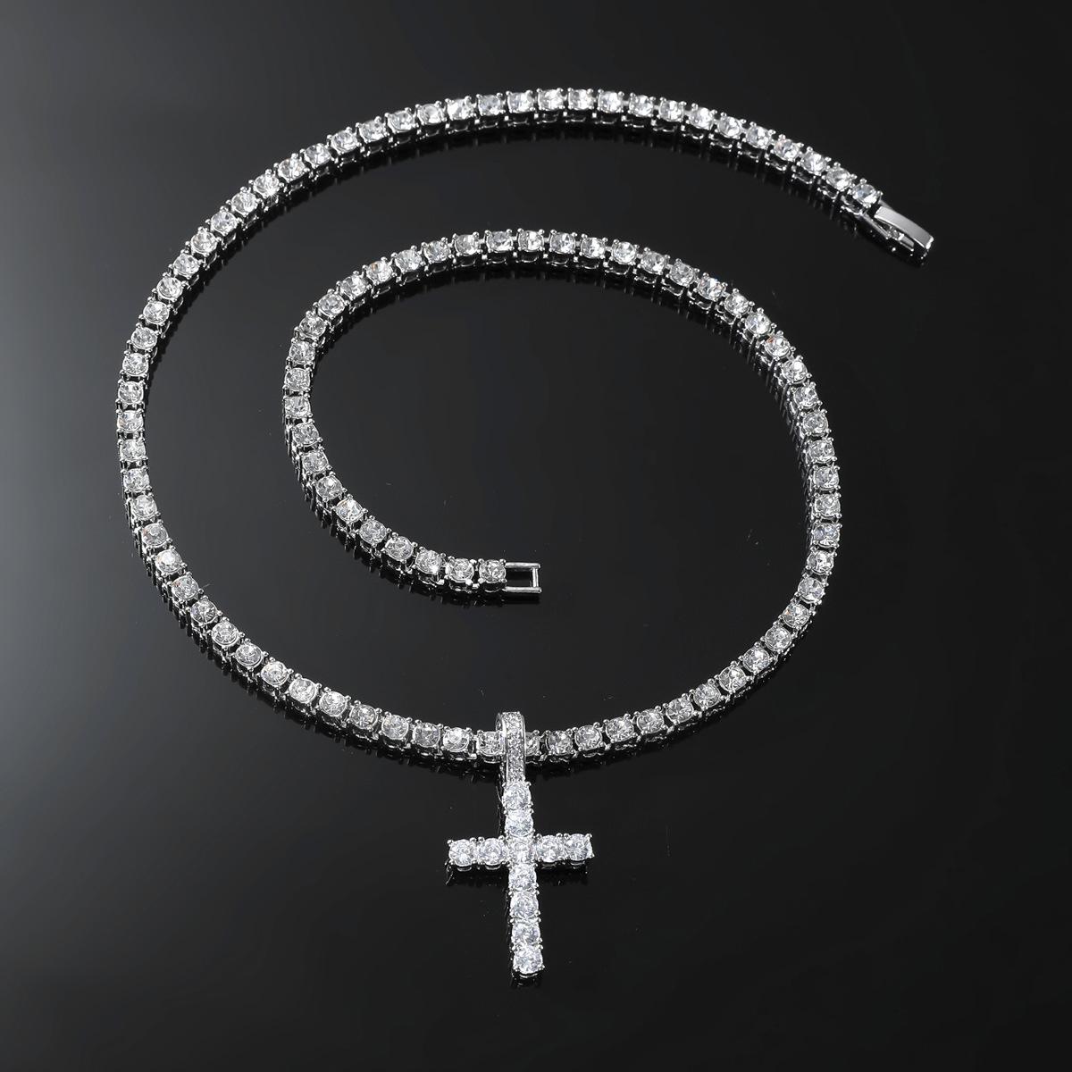 Material: Cadena de tenis: aleación de zinc ecológica + pedrería; cruz: cobre con incrustaciones de circonita