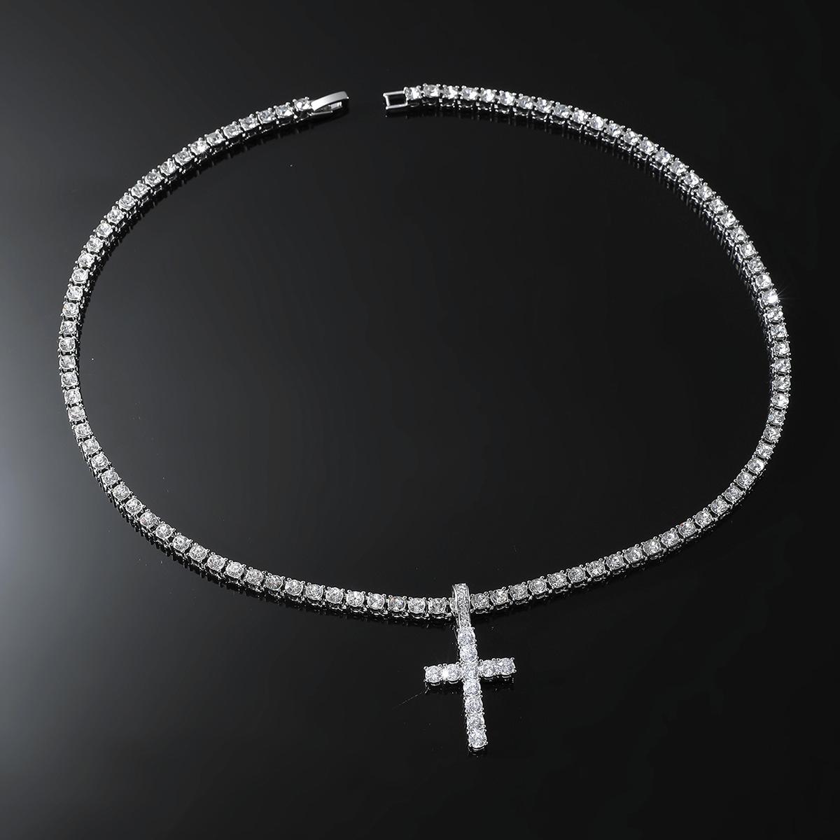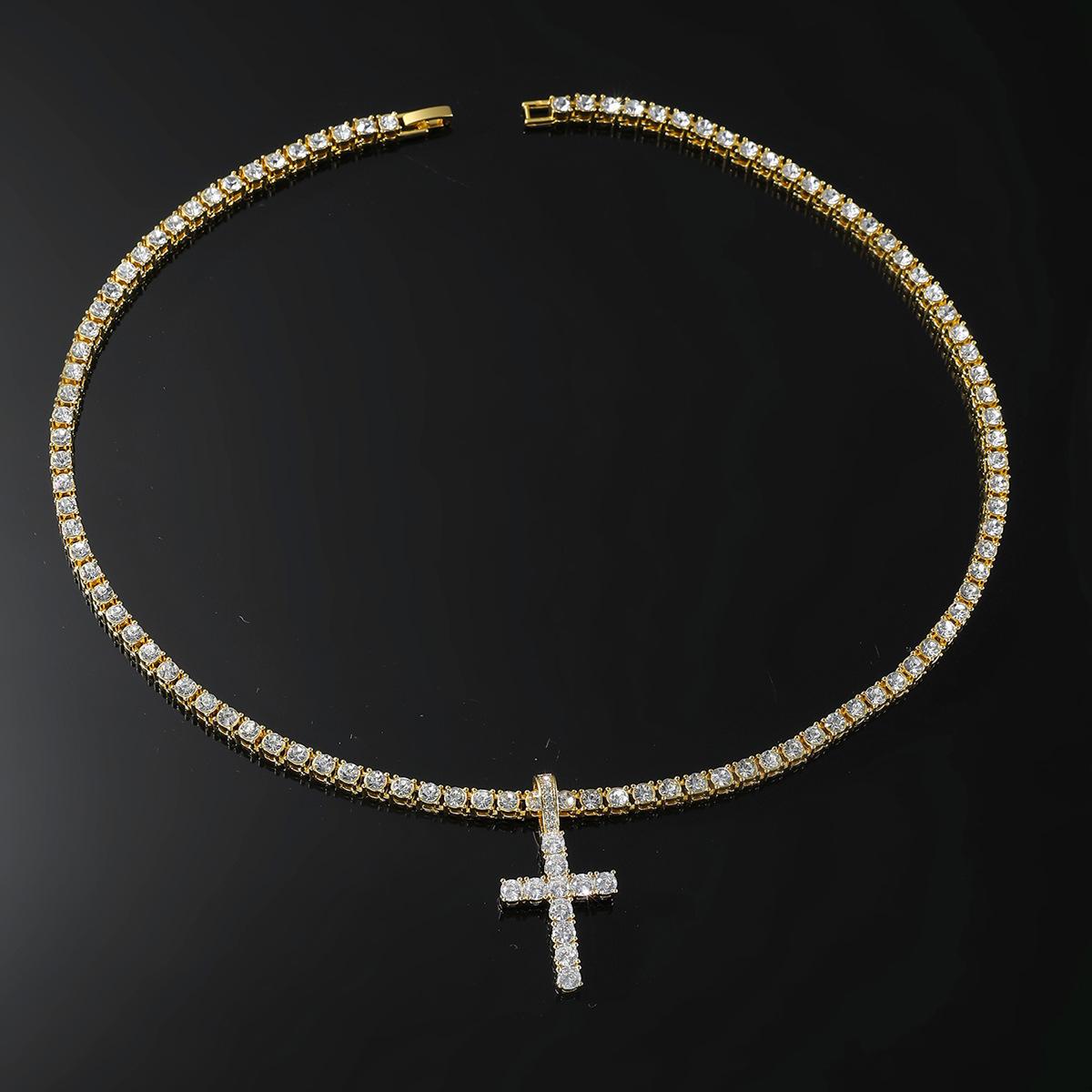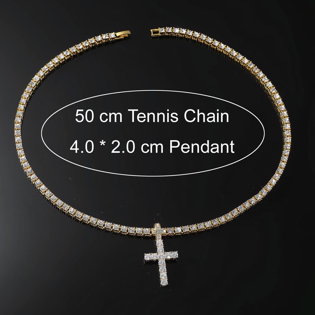 Material: Cadena de tenis: aleación de zinc ecológica + pedrería; cruz: cobre con incrustaciones de circonita