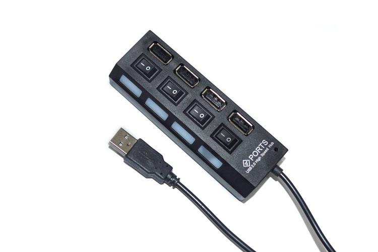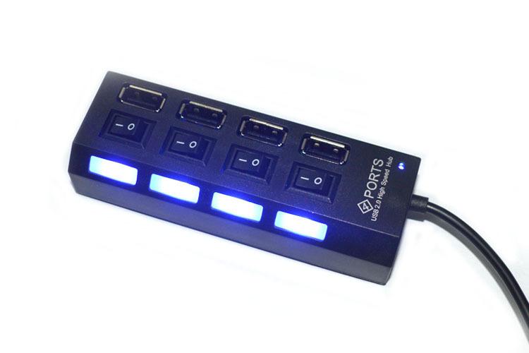 Concentrador USB 2.0 de alta velocidad con botón de interruptor de 4 puertos con luz y soporte para cuatro puertos, divisor de disco duro de 1 TB