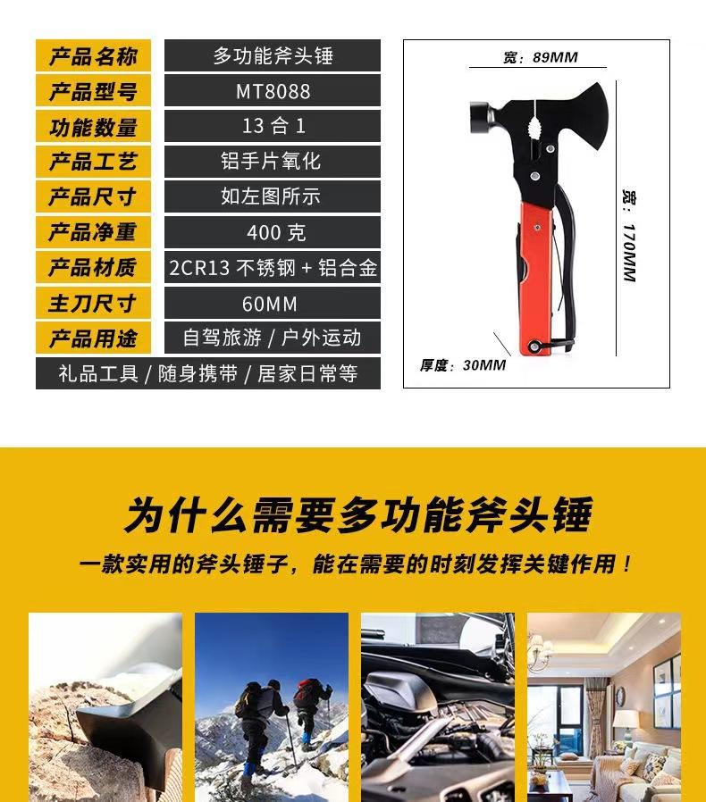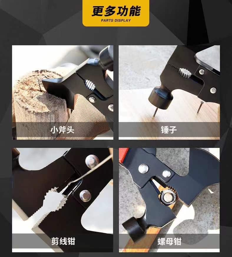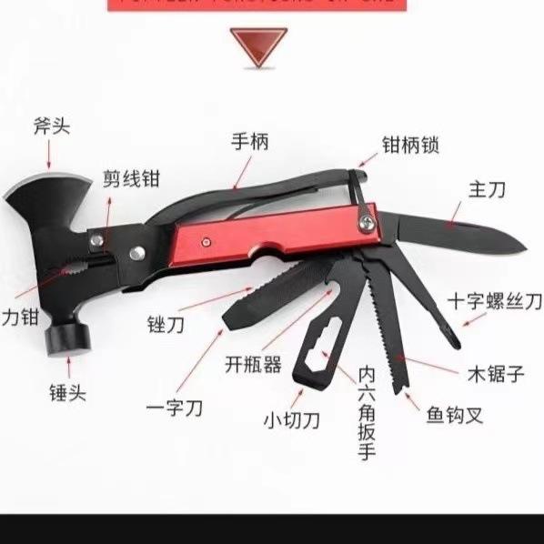 1. Quebra-vidros; 2. Alicate de bico chato; 3. Alicate para cortar arame; 4. Alicate potente; 5. Martelo; 6. Chave sextavada; 7. Tamanho único; 8. Serra;
