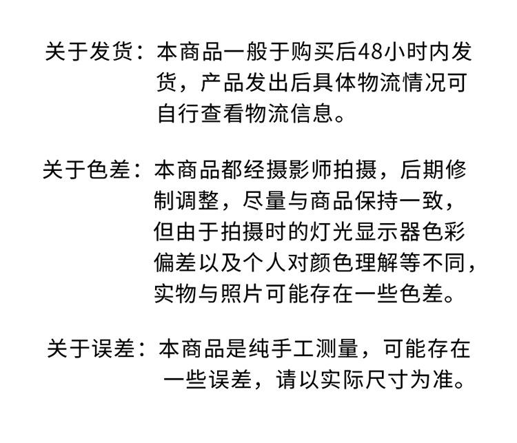 1. Problema de diferença de cor: Todos os produtos são levados em espécie. Após a conclusão da filmagem, para evitar ao máximo o desvio de cor, corrigimos a cor por meio de vários métodos e nossos desenhos profissionais são exibidosO processador também pode garantir que a cor seja o mais próxima possível da realidade. Mas não podemos garantir que os diferentes monitores de cada comprador não tenham diferenças de cor. Tenha cuidado se você não tolera qualquer diferença de cor! Para não ultrapassá-lo desnecessariamenteDinheiro e tempo desperdiçados.