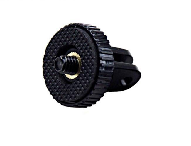 O adaptador de tripé com orifício grande permite que todas as câmeras com interface de 1/4 de polegada sejam usadas com montagens esportivas GoPro.
