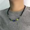 10#X2382 corrente de aço + contas de vidro tamanho 48,5+6cm peso 46g