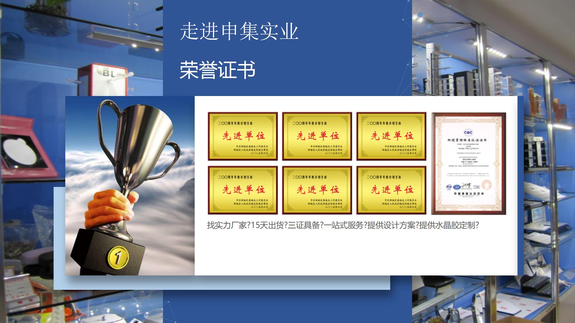 está localizada em Shenzhen, uma zona econômica especial com belas paisagens e pessoas excepcionais. Desde a sua criação, a empresa tem se concentrado na pesquisa, desenvolvimento, produção e processamento de resinas e produtos acrílicos altamente transparentes. Após anos de meticulosa pesquisa e desenvolvimento de processos em produtos, agora a produção da empresa atingiu grande escala, com suas duas oficinas de produção (artesanato em resina e artesanato em plexiglass) cobrindo uma área total de 5.000 metros quadrados e mais de 300 funcionários . Sua oficina de artesanato em resina transparente inclui departamentos como abertura de moldes, rejuntamento, pintura e pulverização de óleo. A oficina de processo de plexiglass inclui máquinas, dobra a quente, serigrafia, montagem de colagem, retificação e polimento e outros departamentos. A empresa está bem equipada e todos os processos são realizados por nós mesmos. Clientes novos e antigos são bem-vindos para visitar a fábrica para visitar a produção. Trabalharemos com clientes com tecnologia avançada, serviço dedicado e preços razoáveis!
