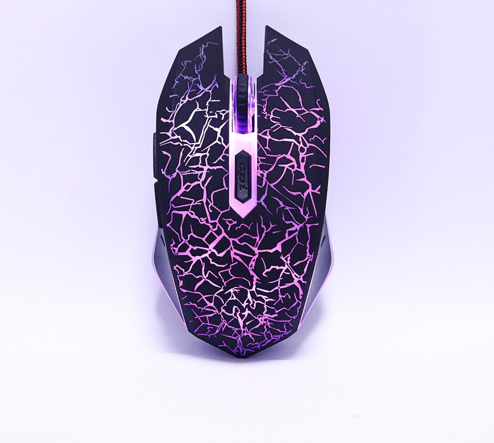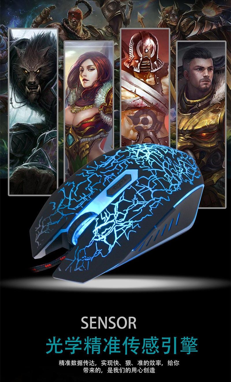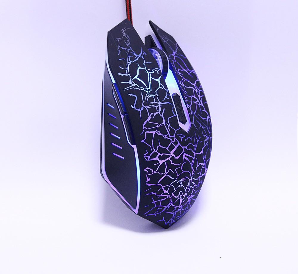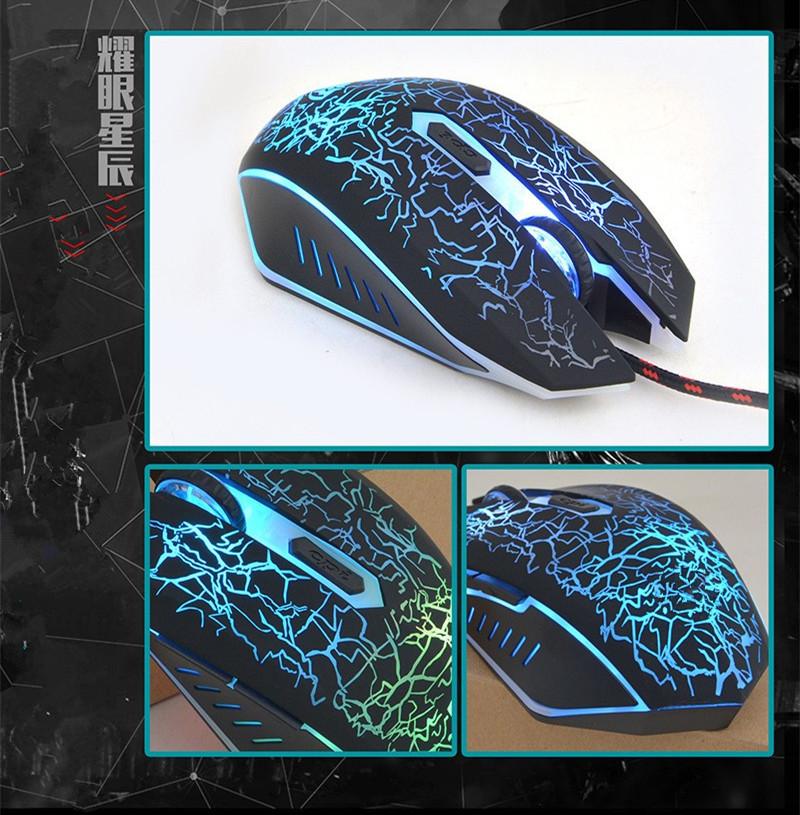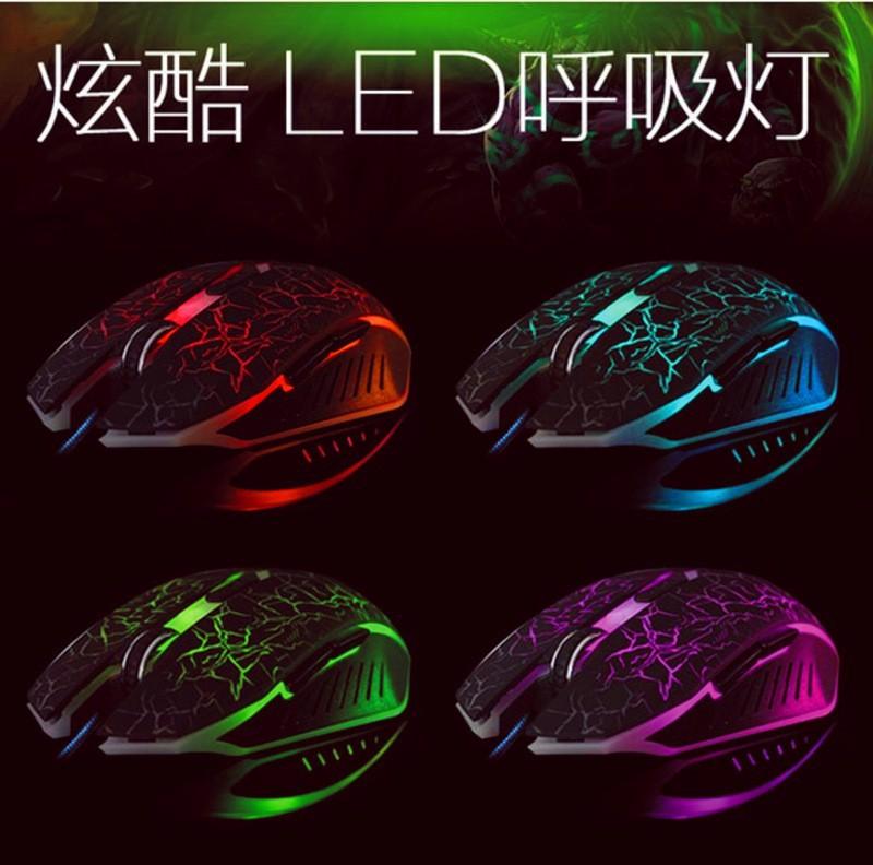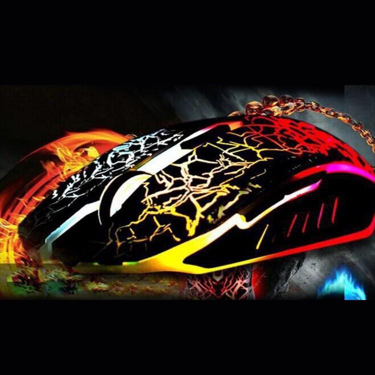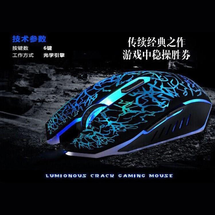 Los fabricantes suministran ratón para juegos con cable luminoso de grieta de ráfaga de brillo colorido