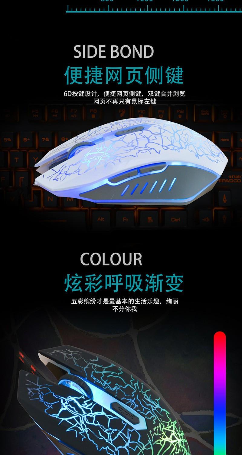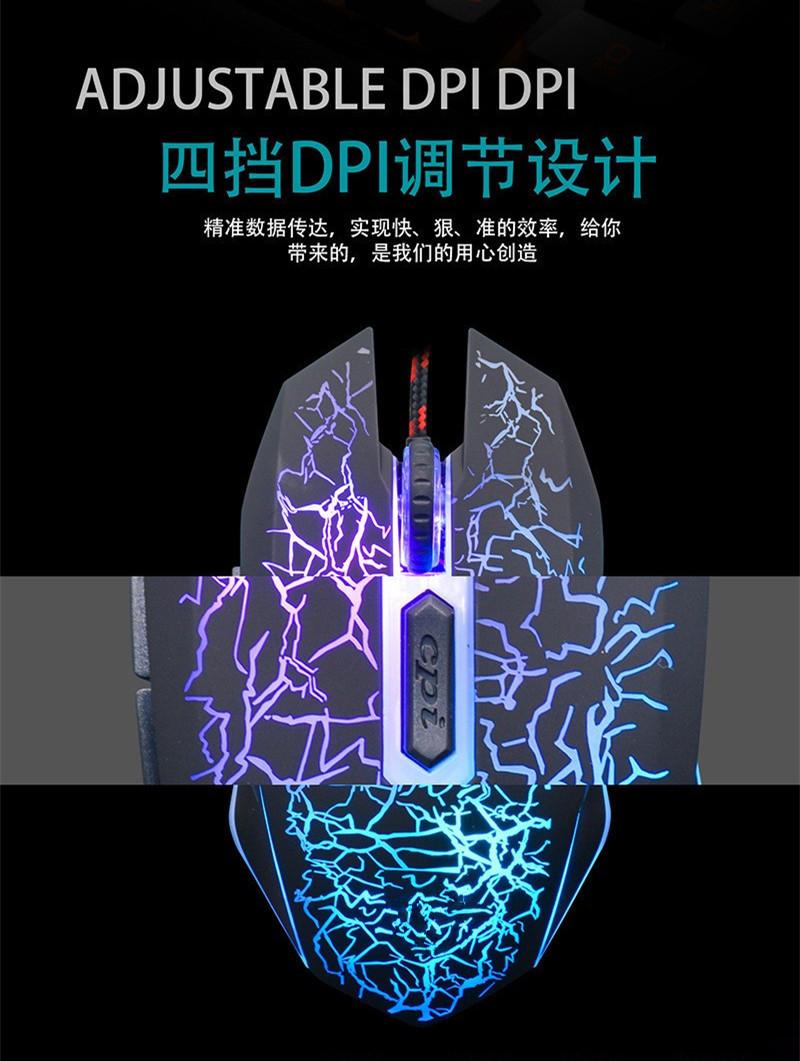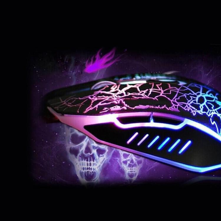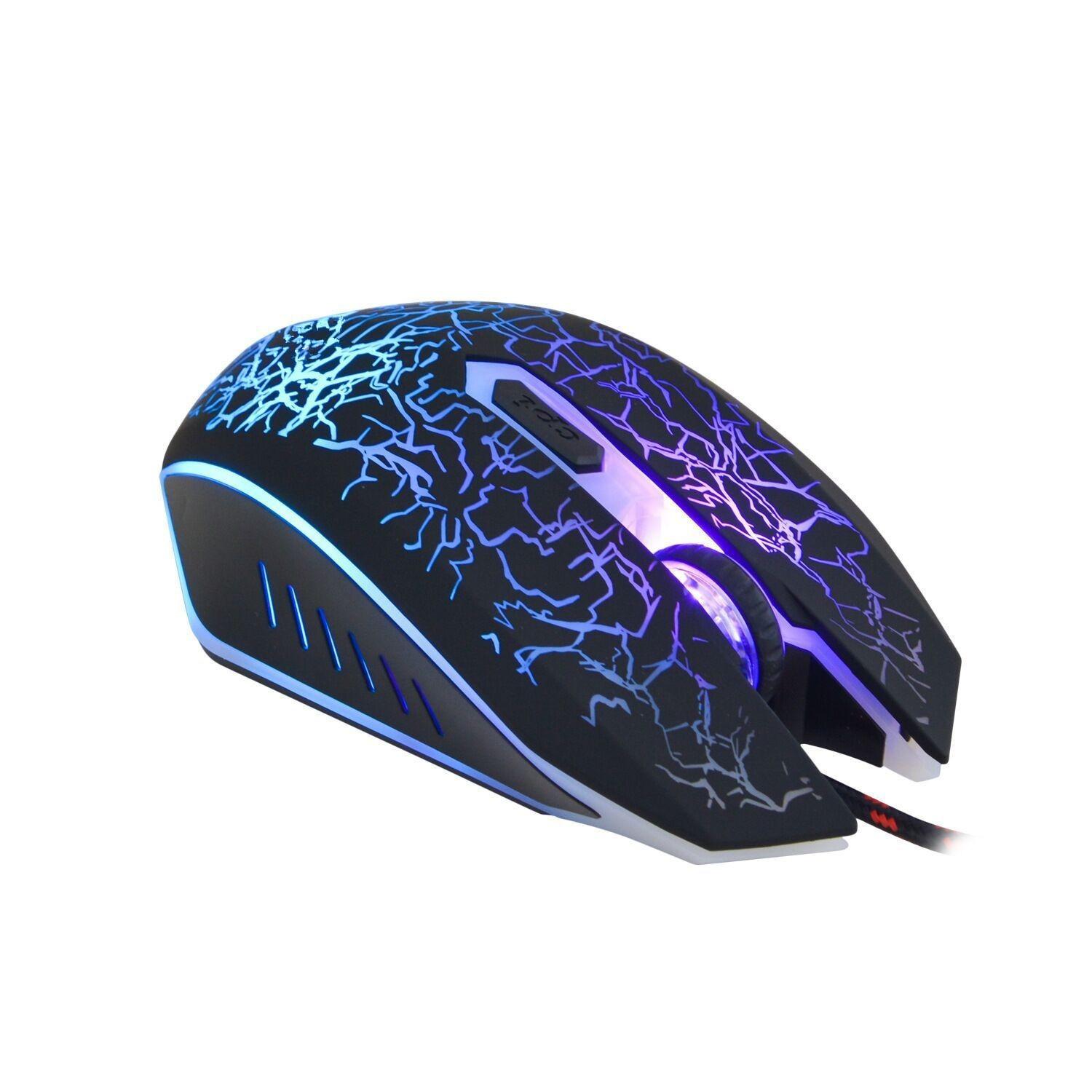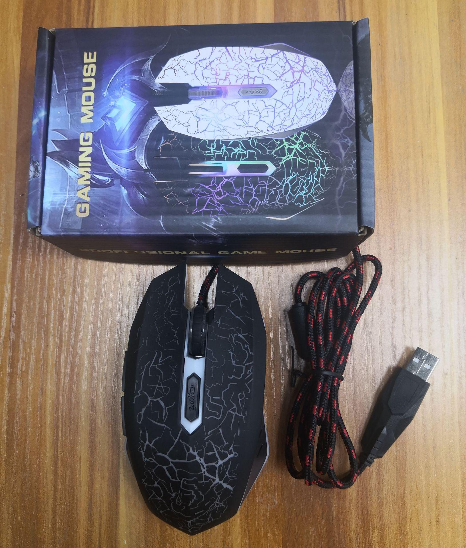 Los fabricantes suministran ratón para juegos con cable luminoso de grieta de ráfaga de brillo colorido