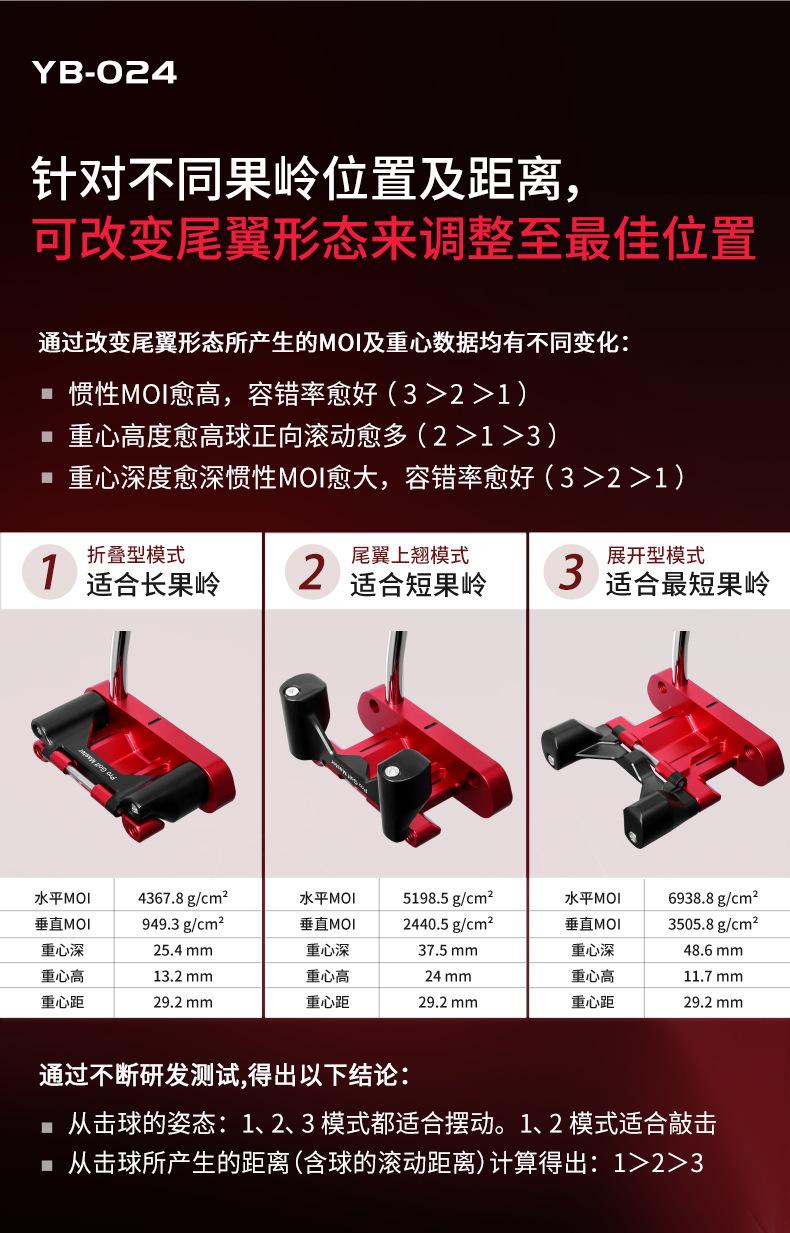 | La forma de la cola se puede cambiar para ajustarse a la posición apropiada según las diferentes posiciones y distancias del green. | ||||