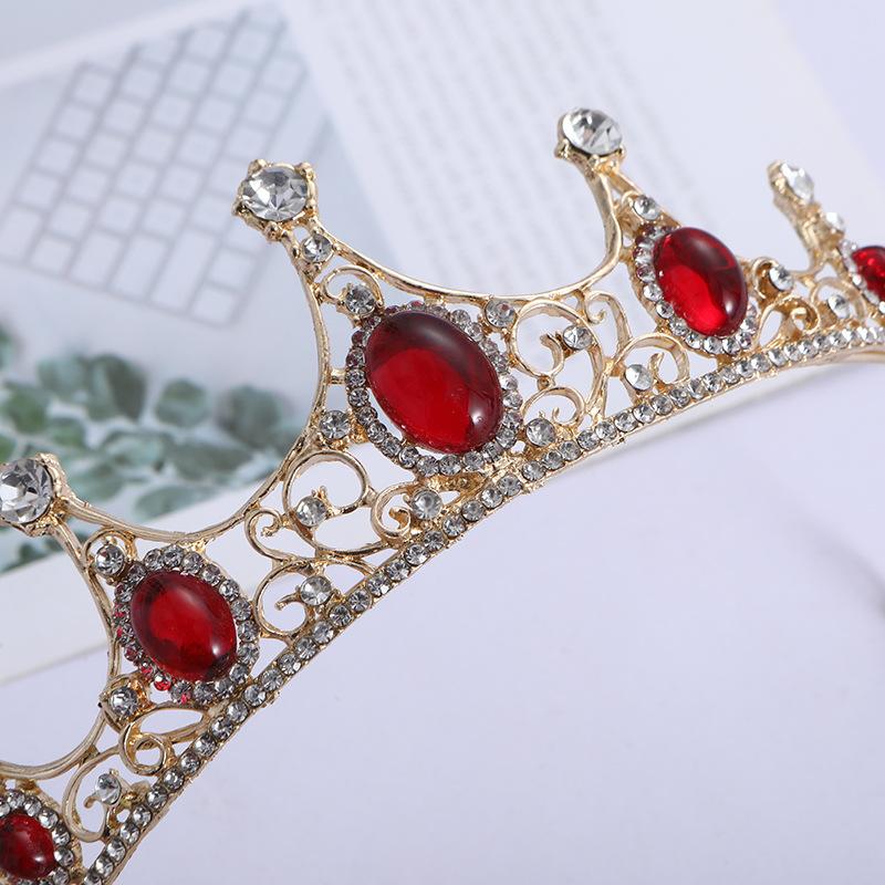 Tocado Nupcial Corona Barroca Retro Europea y Americana Corona de Pedrería Roja Diadema