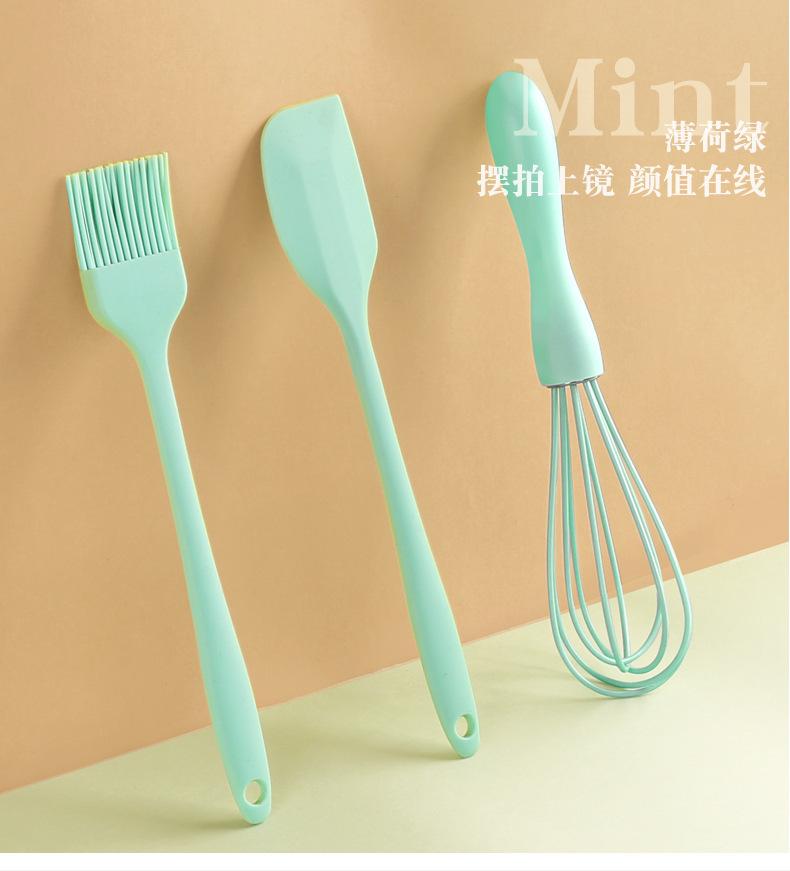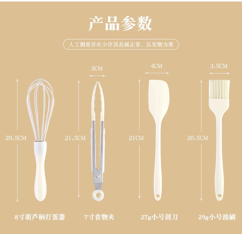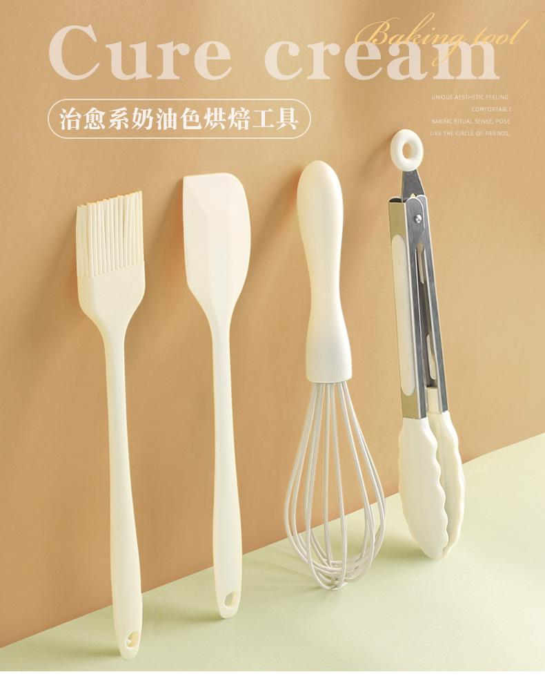 Nome: Novo Conjunto de Silicone para Assar Fouet Pegador Espátula Pincel Conjunto de 4 Peças Cor Creme Conjunto de Cozinha para Bolo