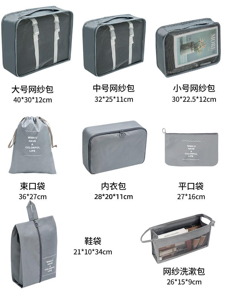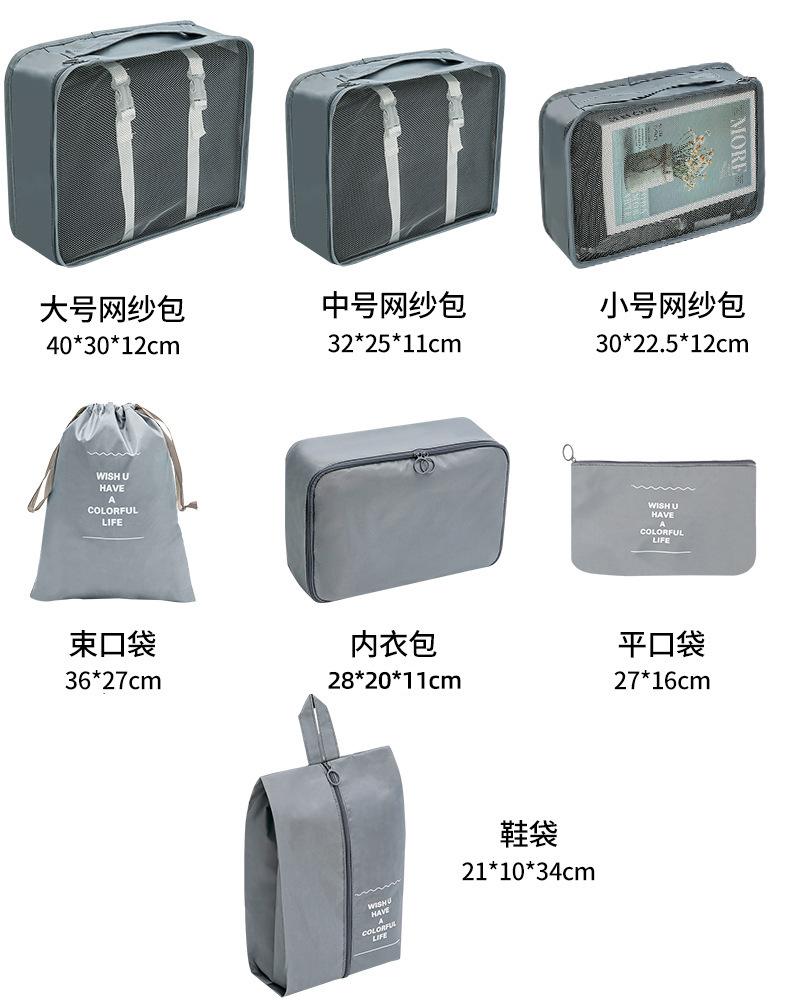 saco de lavagemConjunto de nove peças = conjunto de sete peças +pequenoBolso com cordão + bolsa de higiene com gancho;