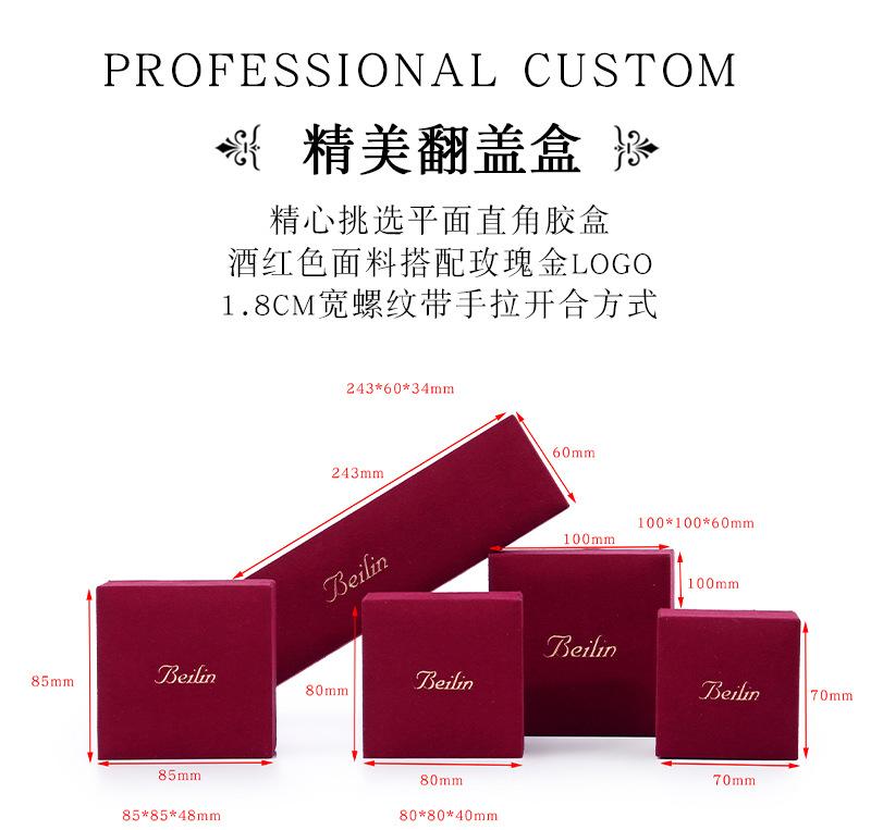 Venda direta da fábrica jóias flip caixa de embalagem de jóias vermelho high-end anel colar relógio caixa de jóias de veludo